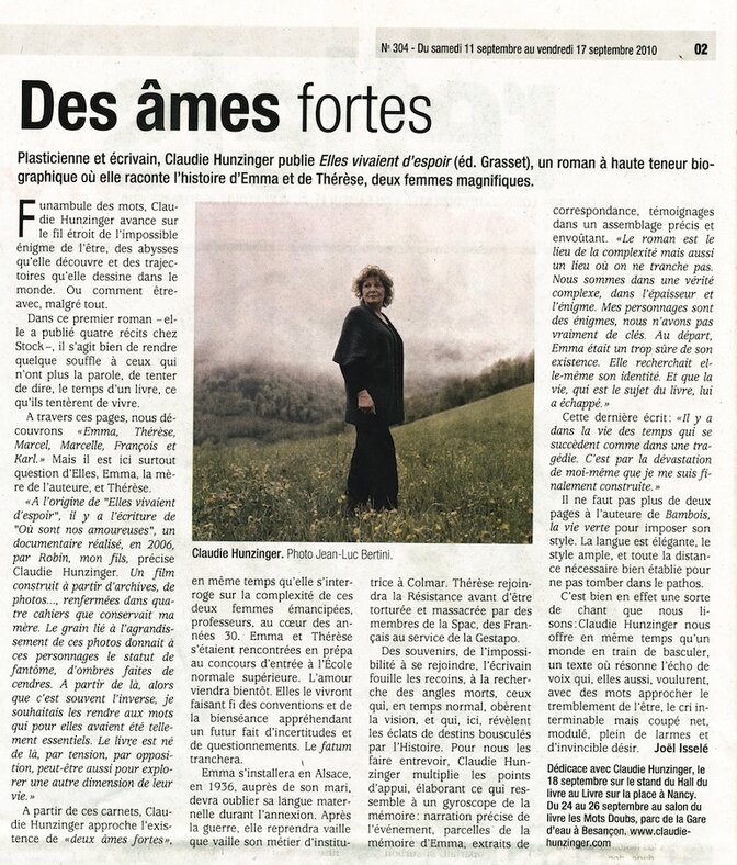 "Elles vivaient d’espoir" dans les Dernières Nouvelles d’Alsace du 11 septembre 2010
